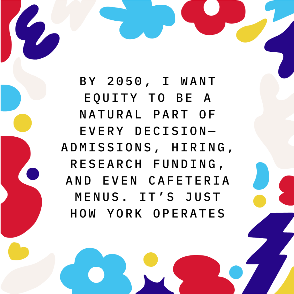 If you could design the future of equity at York in 2050, what three things would you include? Big ideas or small changes—we want to hear them all!